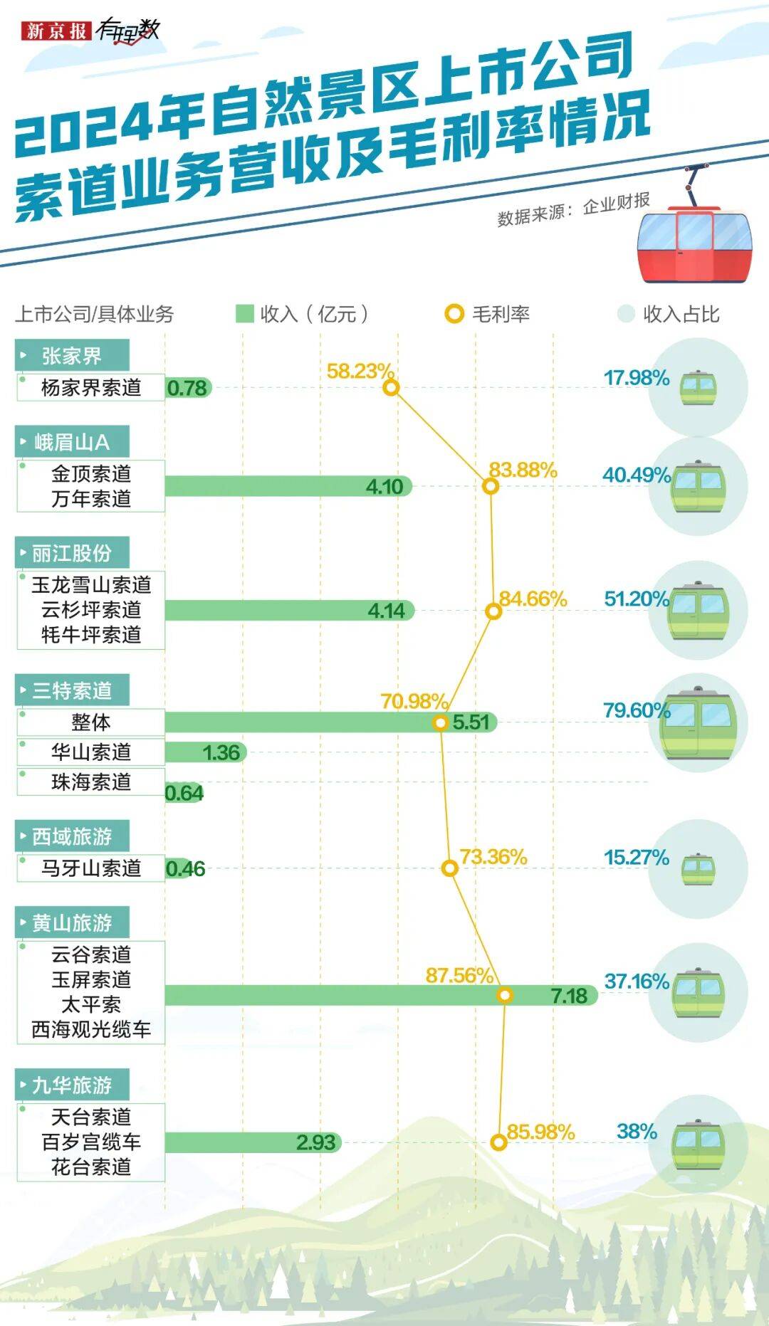 北京联合大学旅游规划与发展研究院研究员张金山告诉媒体,“索道游览市场相对小众,竞争参与者相对较少,因此一般会有更好的利润率。索道属于特种设备,运营存在垄断性,利润也因此受益。此外,索道项目往往建设于崇山峻岭等景区的险要处,游客乘坐需求强烈,因此现金流一般较好。”