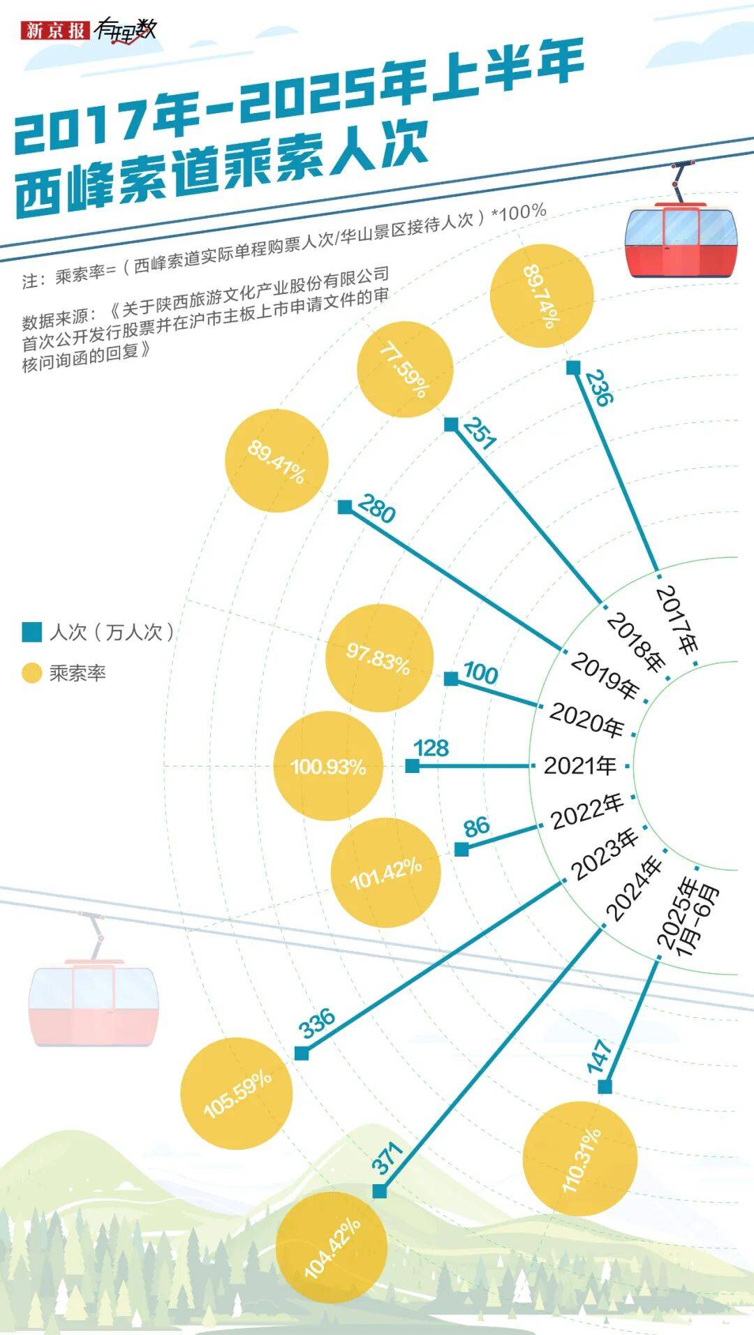2025年5月,陕西旅游文化产业股份有限公司(以下简称陕旅)上交所主板IPO申请已获受理。据9月15日其首轮审核问询函的回复,2025年上半年,其运营的华山西峰索道收入1.5亿元,占所有营收的30%,成为支撑陕旅上市的第二大支柱。
